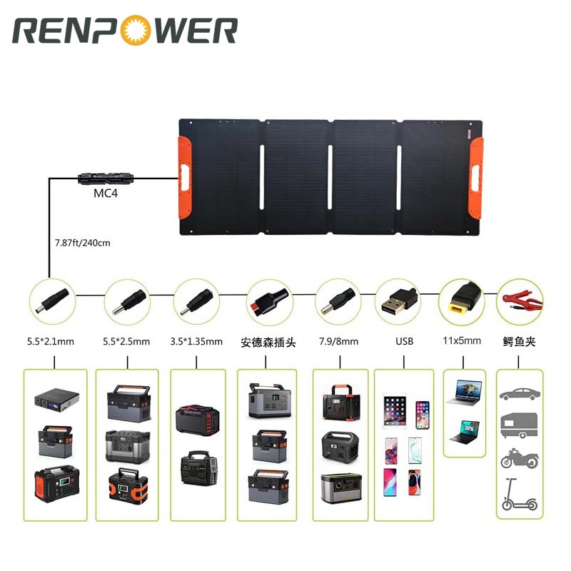 2। 200W পোর্টেবল ফোল্ডিং সৌর কম্বল ব্যাকপ্যাকের পক্ষে সহজ এবং বাজারে বেশিরভাগ সৌর জেনারেটরের সাথে সামঞ্জস্যপূর্ণ।